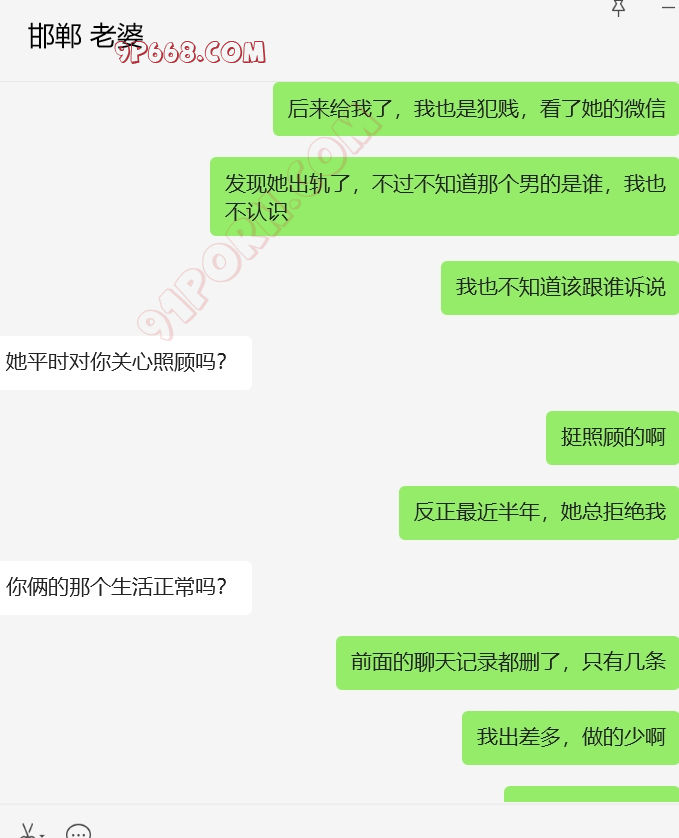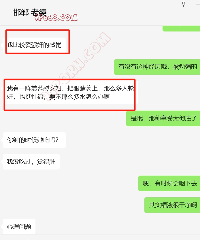 他偷偷拿老婆的手机加了我微信,过了一段时间给她打招呼,就说是可能以前玩探探的时候加的(他知道老婆以前聊过探探),她也没怀疑,慢慢聊的多了,和她挺有共同语言的。不过有一段时间不怎么回我信息了。后来我借口发现媳妇出轨(假的),跟她进入了性话题。开始给她看3p的视频,结果她喜欢看多人的,还幻想被强奸,真是极品哦。后来还跟她聊起了淫妻的话题,他老公也经常跟她说找男人草她。